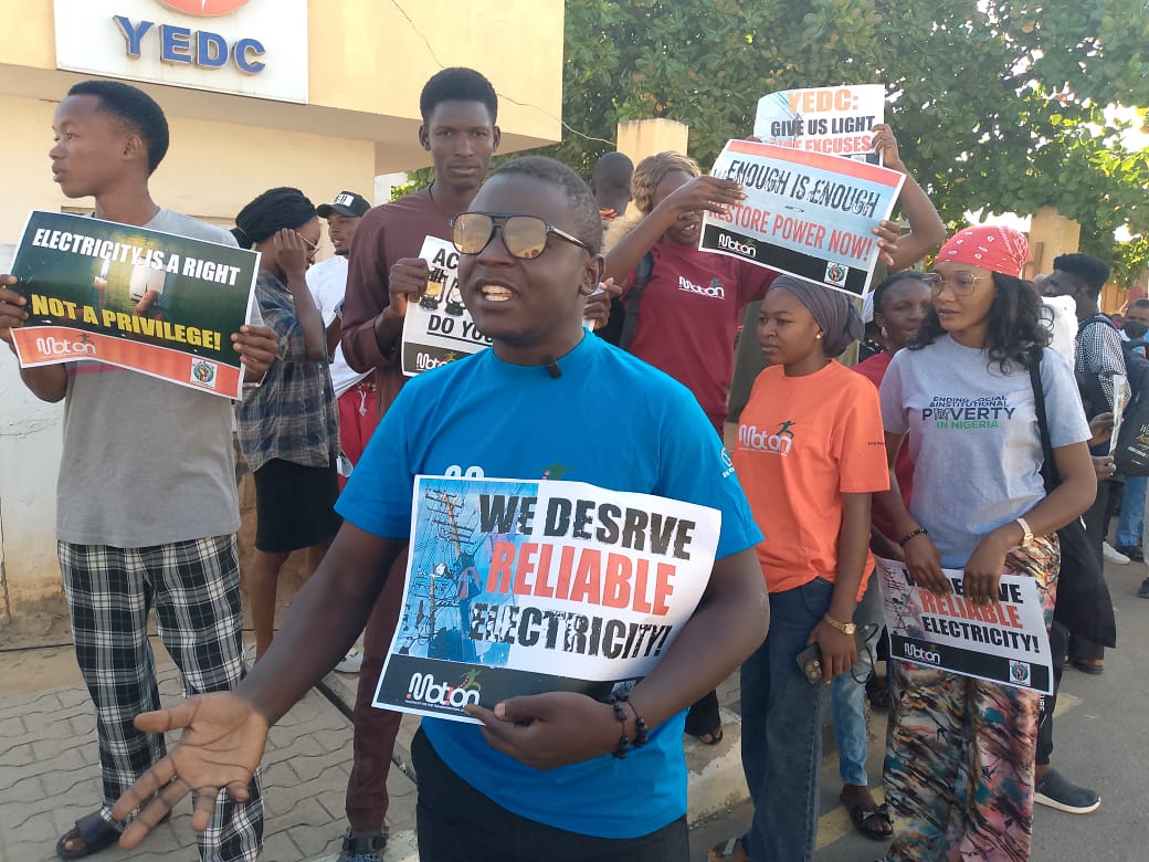 The protesting youths, operating under the umbrella of the Movement for the Transformation of Nigeria (MOTION), occupied the corporate headquarters of YEDC and barricaded all access points. They displayed placards condemning the erratic electricity situation and disrupted operations at the facility throughout the demonstration.