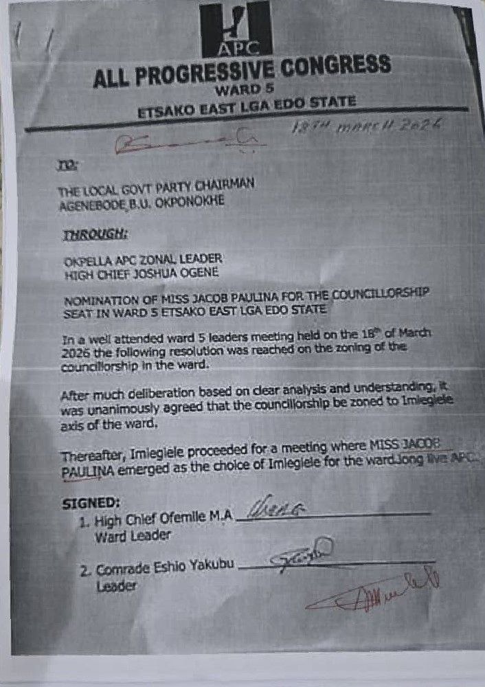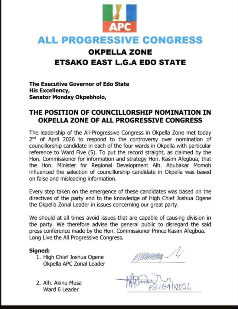 Omonuwa Omokhefue writes in from Okpella, Etsako East Local Government Area Of Edo State