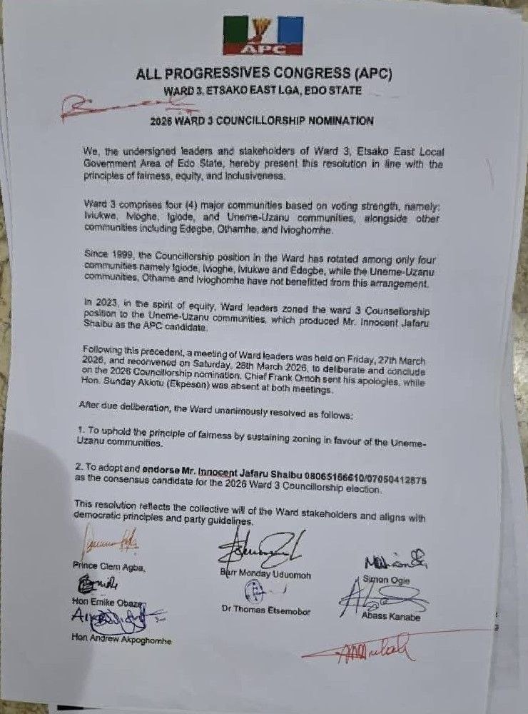 The process that produced councillorship candidates in Etsako East was not manufactured in Abuja, nor was it dictated by any single individual.